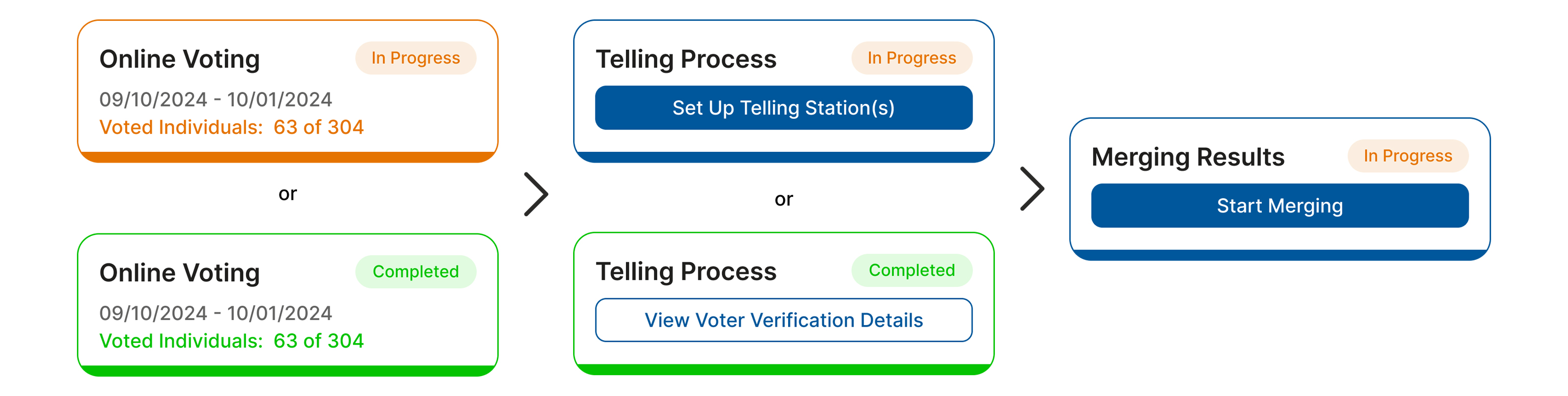 and for the following statuses of the elections:
