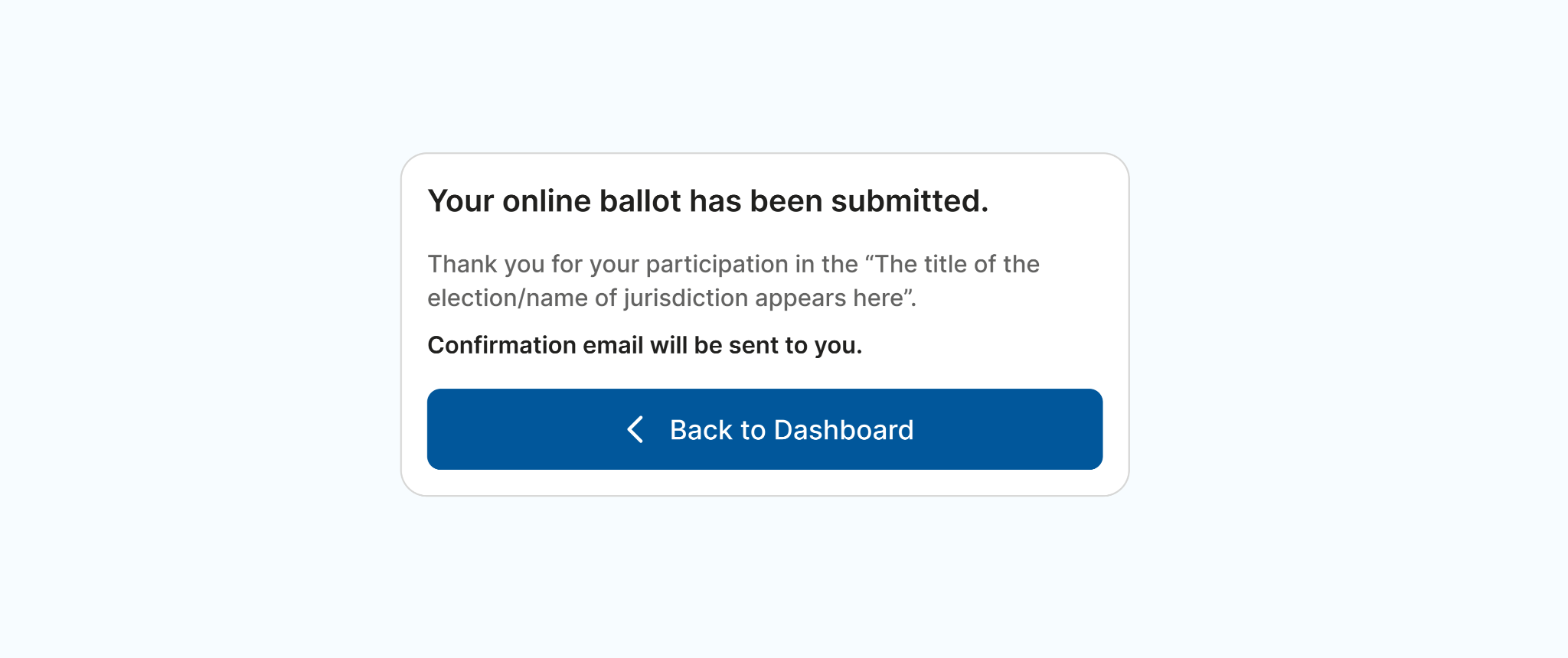 Once your ballot has been successfully submitted, you will receive a confirmation message at the email address on file for you in the national membership database.
