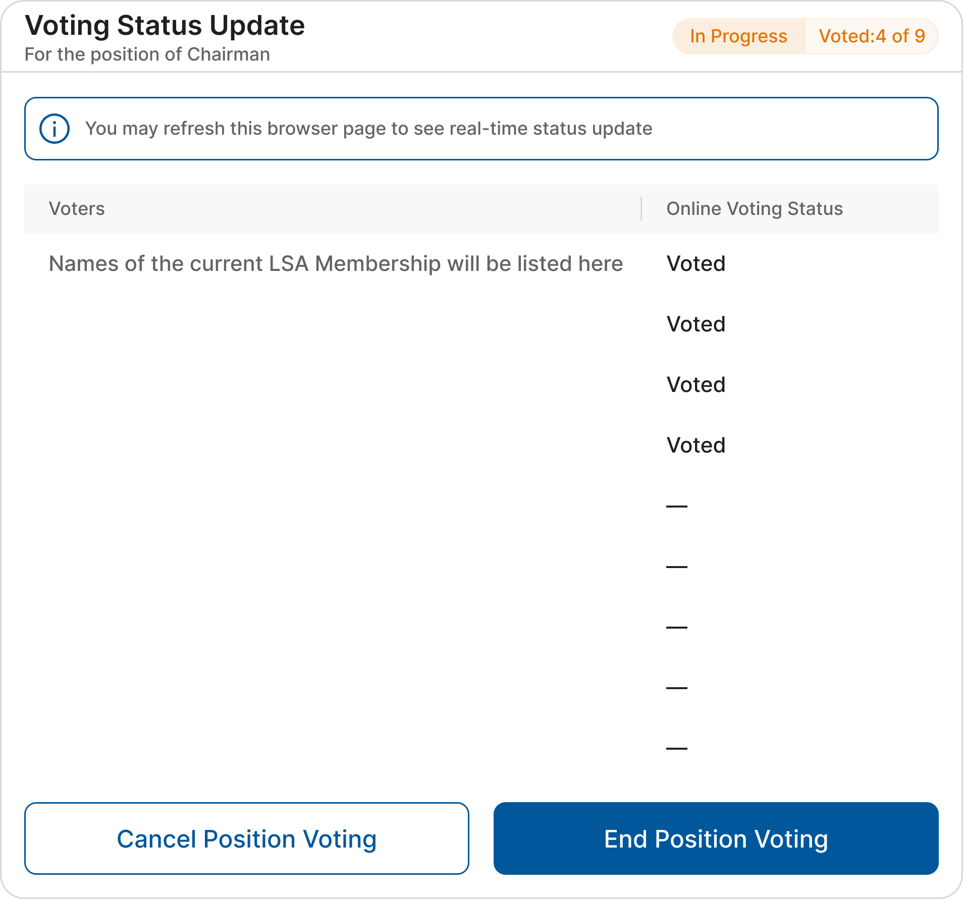 At this point, the voting status will change to “In progress” and the tellers can monitor the results by clicking on “View Results.”
