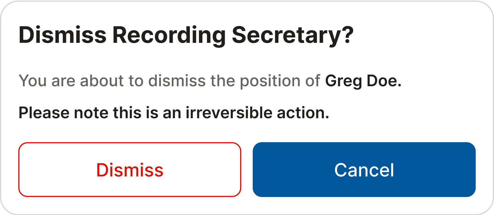 If an LSA Member has been assigned to the role of Recording Secretary, which may not be a mandatory position in your jurisdiction, please click the "Dismiss" button to remove the member from this role.