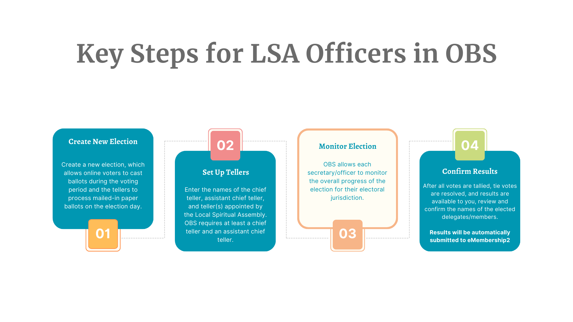 IMPORTANT: Given the common functionalities across the elections that OBS supports, a standardized set of user guides and videos has been created to be applicable to all election processes. The few significant distinctions between the various elections are addressed where relevant. The dates, names of localities, and other data found in the user guides and videos are created at random and are used only to provide examples for the concepts presented.